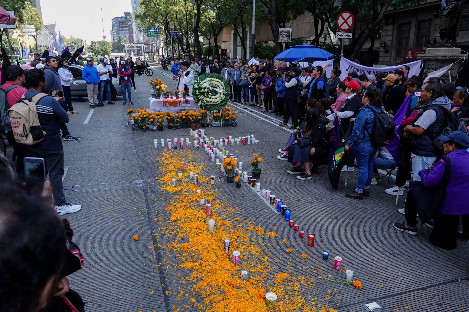 Las y los inconformes colocaron veladoras, flores de cempasúchil, así como una corona de flores blancas para hacer un llamado a las autoridades a no cerrarles la puerta y a trabajar directamente con ellos.