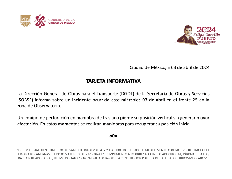 EMEEQUIS.– Un nuevo accidente en las obras del Tren Interurbano fue reportado la tarde de este miércoles 3 de abril a la altura de la alcaldía Álvaro Obregón. Con éste suman cuatro accidentes en esta obra durante este sexenio.