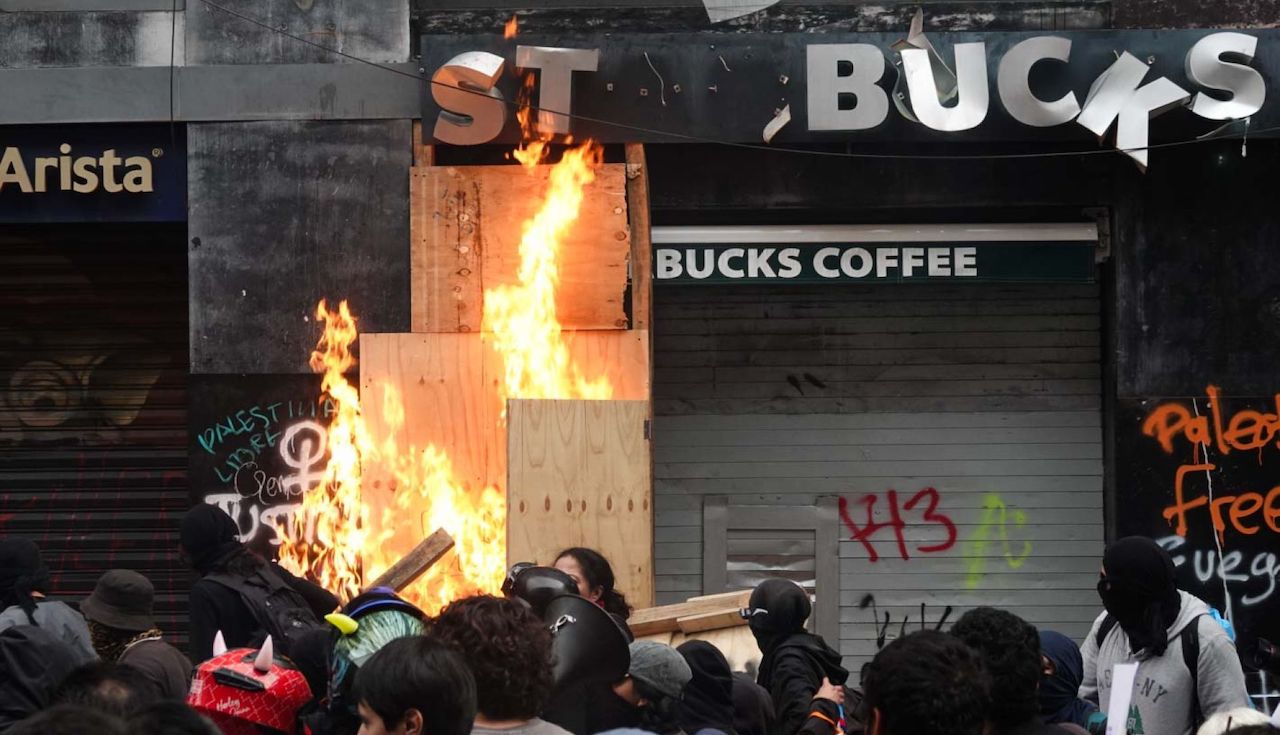 Fuego, golpes y humo: Bloque Negro causa destrozos en marcha del 2 de octubre
